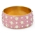 1½ inch wide, brown bangle, hand studded with silver plated metal rings, flowers, metal balls & metal chain. Inner diameter size is 67mm / 2.6". Sold individually.