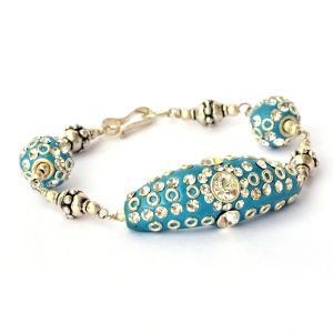Handmade Bracelet having Blue Beads with White Rhinestones