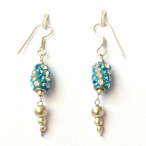 Handmade Earrings having Blue Beads with White & Aqua Rhinestones