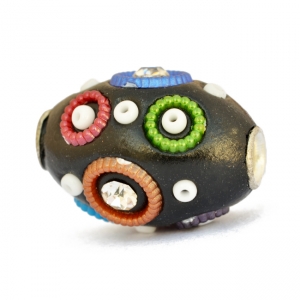 20 x 15 mm, barrel shaped, handmade kashmiri bead having 3 - 3.5 mm hole size. Hand-studded with seed beads & colorful rings. Price mentioned below are for 50pc beads.