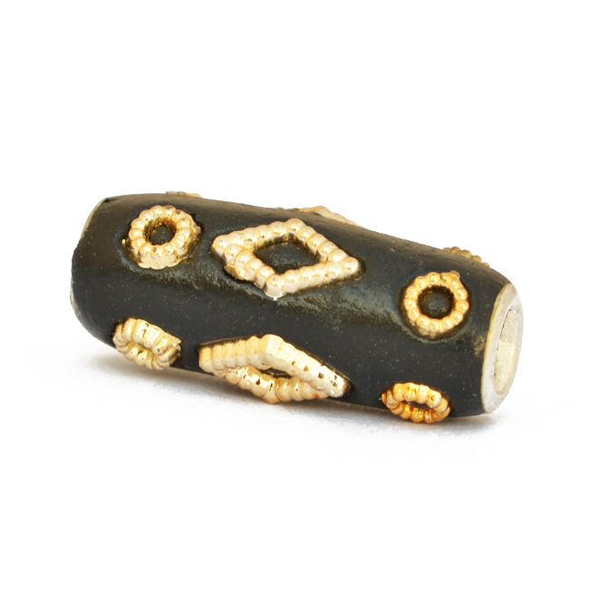 20 x 9 mm, cylindrical, handmade kashmiri bead having 3 - 3.5 mm hole size. Hand-studded with golden color accessories. Price mentioned below are for 50pc beads.