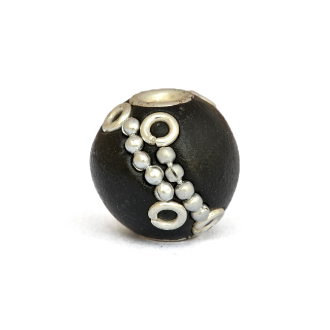 13 mm, round, handmade kashmiri bead having 3 - 3.5 mm hole size. Hand-studded with silver plated rings & metal chains. Price mentioned below are for 50pc beads.