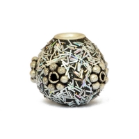 50pc Silver Kashmiri Beads Studded with Metal Flowers